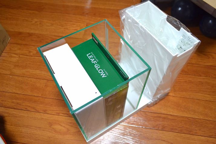 製品を箱から出して見ると、確かにオシャレでスッキリとしていますが、はたしてろ過機能をはじめとする水の循環がスムーズに行われるのかどうかが気になりました。水槽本体のサイズが小さいので、水流の強さ加減も気になります。いかにオシャレで見栄えがよくても、肝心の循環機能がダメなら意味がありませんので。今回は、セットしてから2週間での印象を報告します。