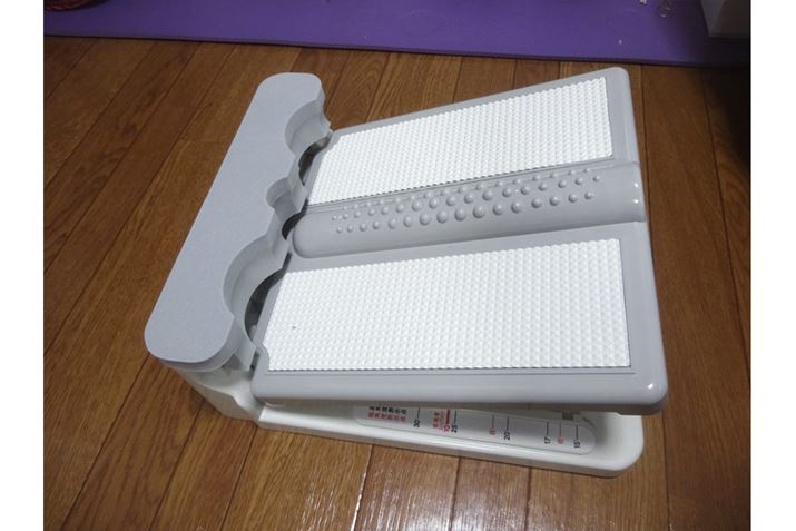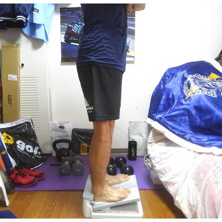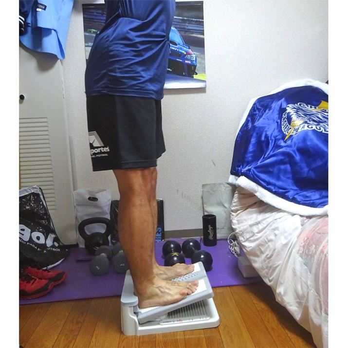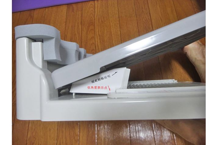 辛いことは辛いものの、痛キモチいいといえる範囲の辛さで、ただちに挫折することはありませんでした。角度をキツくすると、ただ立つだけで足の裏側が伸ばされ、これがまた適度に痛キモチいい。