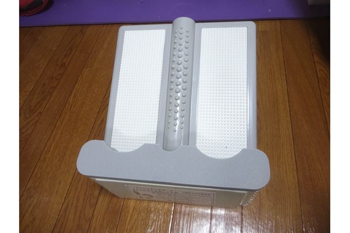 カカトがしっかり固定され、足裏ツボを刺激するためのイボイボも付属。重さは1kg以上あるので、携帯性は期待できません