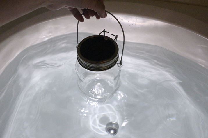 下の動画(最初10秒ほど音声のみです)のように、スイッチを入れると、やさしい光が瓶からあふれ出るように広がります。フタを閉めたり、スイッチの切替えによるカチャカチャという音が耳にも心地よく、灯りのオンオフが“ふわぁっ”と切り替わる、素朴な雰囲気で癒やし効果高めです。