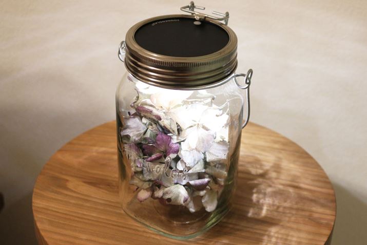 ランプと瓶を完全分離できるので、中身を入れ替える時や汚れが気になった時に洗いやすいところも気に入っています。今回だけかもしれませんが、あじさいのドライフラワーを入れて数日フタをしたままにしていたところ、ちょっとニオイが気になる感じになったので、長時間閉めたままにはしないほうがいいかもしれません