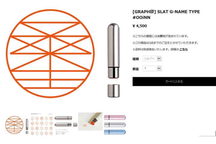 続いては、幾何学模様の印影が特徴の印鑑。このデザインは好き嫌いが分かれると思いますが、個人的には非常にかっこ良い印影だと思います。本体は既存の有名製品を使っているところも安心感があっていいですね。