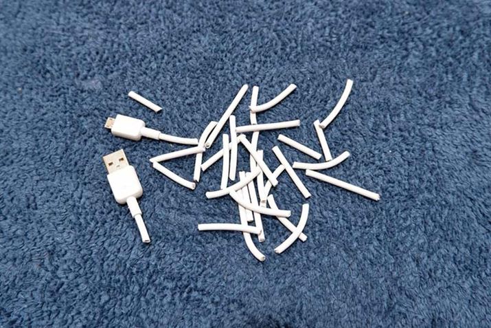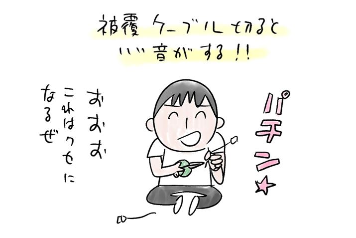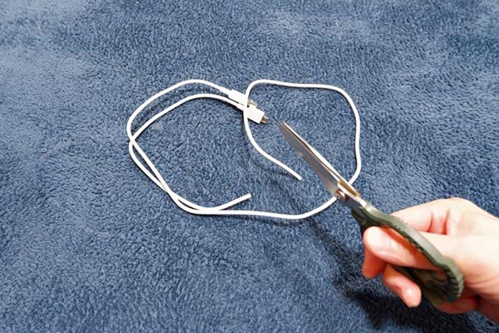 USBの被覆ケーブル。こういうのって普通のハサミでは簡単には切れませんよね。