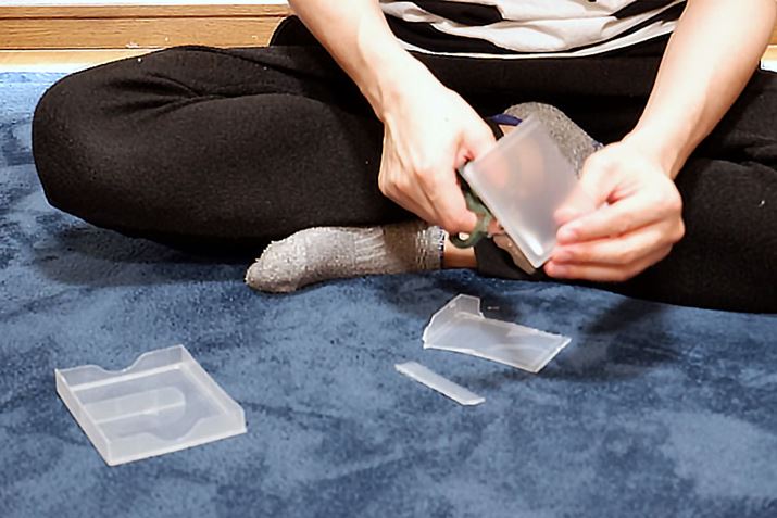 あまりにも簡単に切れるので、バラバラになるまでハサミを入れてしまいました。「簡単に切れる」ということは伝わりましたでしょうか。それにしても無残な光景だ……。