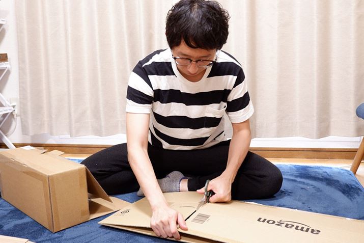 ハサミで切ってもいいですし、段ボールにオープナーを使って切れ目を入れて、折ってゆくのもいいですね。