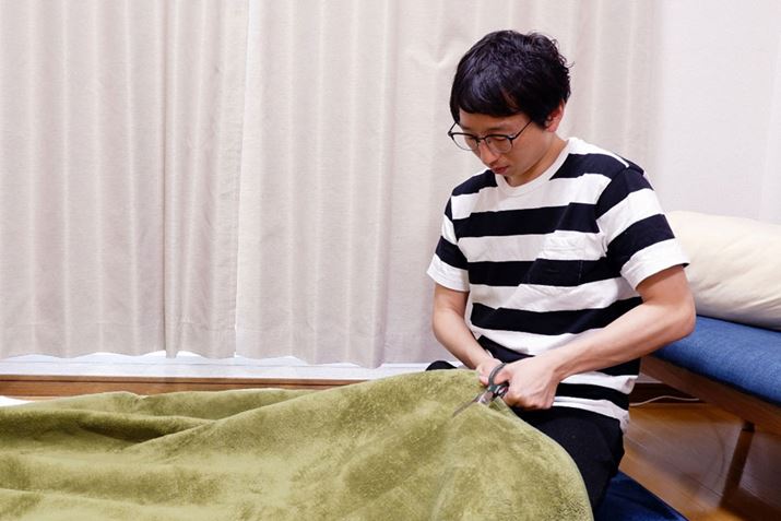 このラグはフワフワしていて、厚みがかなりあります。実は以前に普通の事務用ハサミで切ろうとしたんですが、刃が立たなかったことがあるんですよね……。