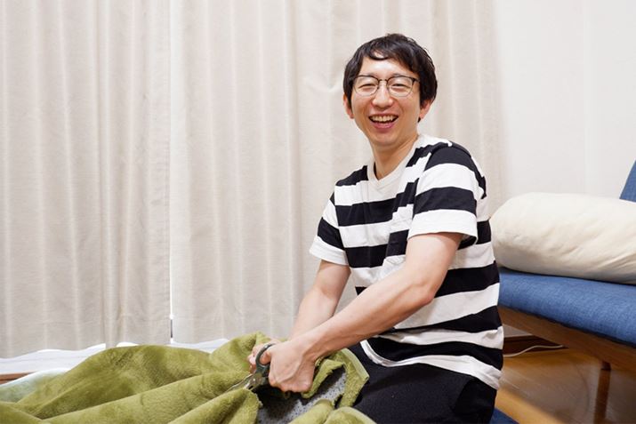 でも鉄腕ハサミGTなら全然切れます。僕がものすごく笑っているのですが、「切る」という快楽に完全におぼれてしまった人間の笑顔ですね。大丈夫です。「鉄腕ハサミGT」を使っていれば、みんな自然とこうなっていくのだから……。
