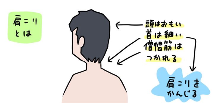 だいたいの人の首って細いじゃないですか。首に付いているだけの筋肉では、頭を支えるにはちょっと弱いんです。こうした僧帽筋などの筋肉が疲れてくると、「肩こり」として感じられてくる、というわけです。肩こりといっても、実際にこっているのは「首」であることが多いんです。