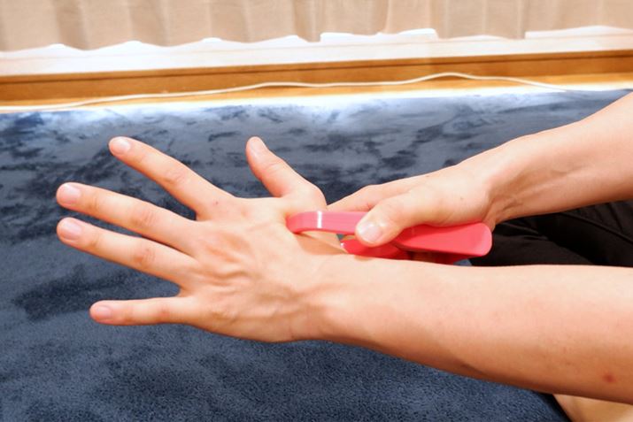 1回10秒くらい圧を入れます。回数は好みで大丈夫ですが、押されている部分の感覚がなくなってきたらもうやらないほうがよいでしょう。また、使ってみて痛みをともなう場合もやめておきましょう。
