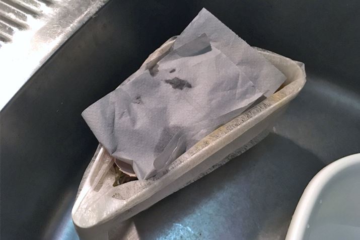 これだけです。めちゃめちゃ簡単で手軽です。大丈夫でしょうか。生ゴミが水分を含んでいるため少し濡れていますね。これで少し時間をおいてニオイをチェックしてみましょう。