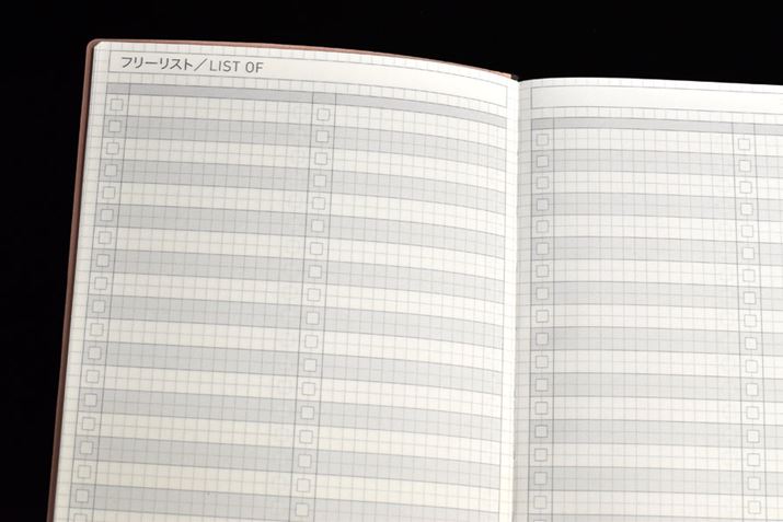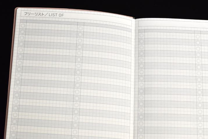 「ジブン手帳Lite mini2020」の「フリーリスト」。チェックボックスや交互に色分けされた方眼罫は、あるテーマに沿ったリストアップなどに最適だ