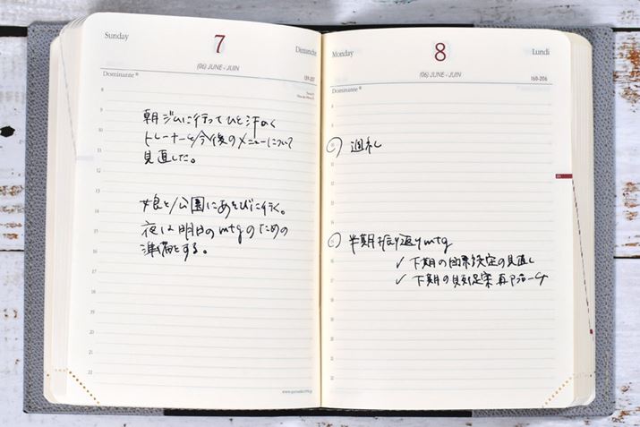 向いている使い方は、むしろ手帳というよりは日記帳的なそれだ。1日ページの時間軸を無視して、その日のできごとを振り返るような使い方ならば、アルファベットへの違和感もさほど気にせずに済むだろう。