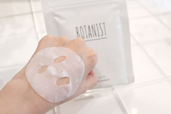 10分も持たずに乾いてきてしまうシートマスクもありますが、「ボタニカルシートマスク」はかなり水分がたっぷりな印象。これならはがすまで十分なうるおいが持続しそうです(写真はプレス発表会用のお試しサイズです)