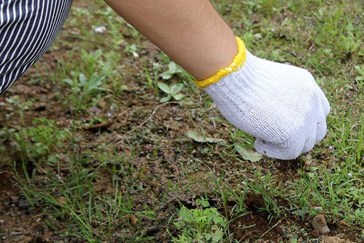 「コーティング手袋」、「特防」、「純綿」、「混紡」の4種で草むしりをして、それぞれの使い心地を検証してみた。
