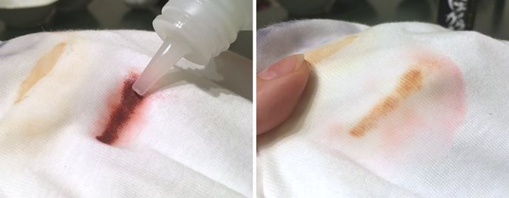 油性と水性のシミを同時に落とせる3種類の界面活性剤と有機溶剤を独自ブレンド。とのことですが、本当にしっかりシミを落とせるのでしょうか? 今回はいろいろなシミを使って検証してみたいと思います。