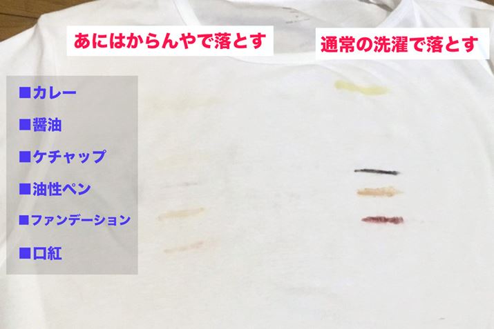 なお、「あにはからんや」には落とせるシミと落とせないシミがあるようです。油や食べ物系に強いみたいですね。