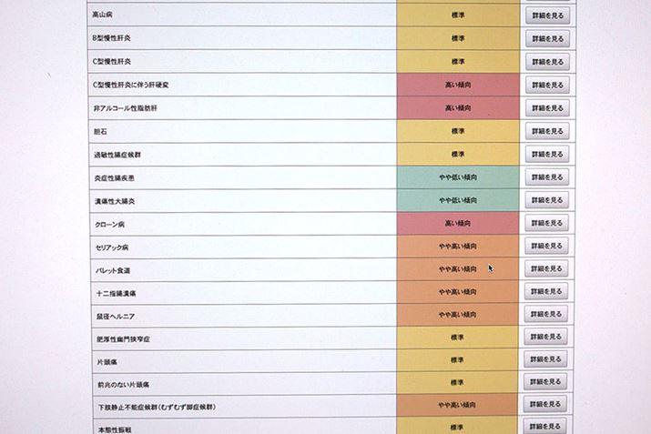 そのほか、リスクの高い病気をまとめて見ることができたり