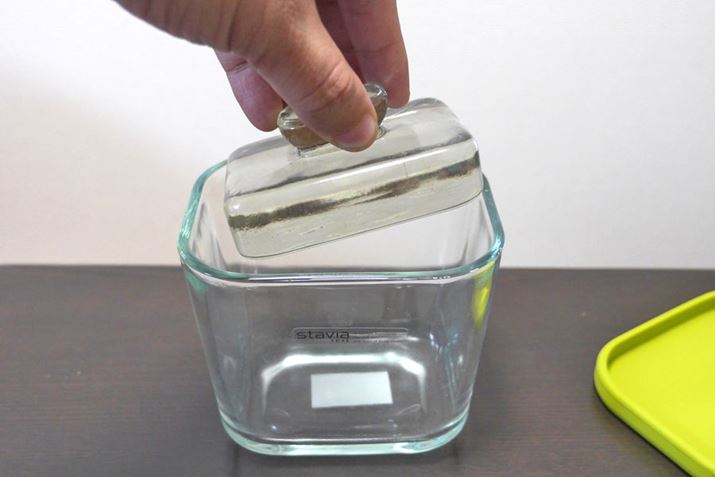 この分厚いガラス製の押し板が漬物石代わりになって、野菜を漬けてくれるというタイプです。