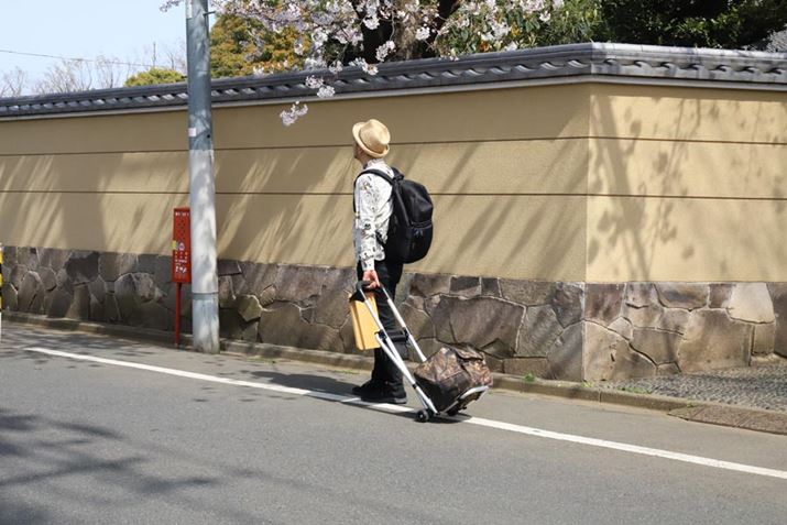 移動はこんな感じでゴロゴロと。タイヤは小さめだけど、フラットなアスファルトなら問題なし。野外の未舗装路はたぶんキツい