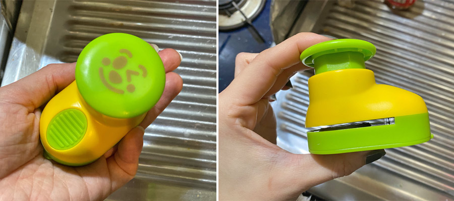 穴開けパンチの要領で、隙間に海苔を挟んで上から押し込めば、見事に海苔がカットされます!