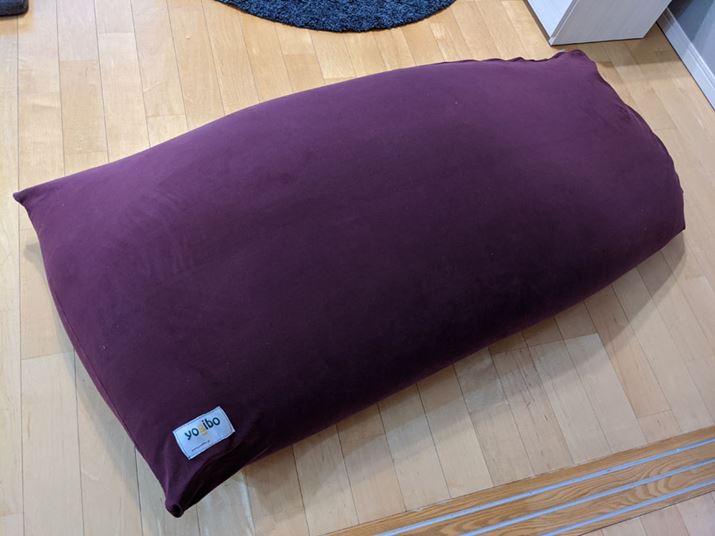デスクの代わりを務めることになった「ヨギボーマックス」。サイズは、約65(幅)×170(奥行き)cm。購入したのが約4年前で、ビーズの補充はしているものの、新品と比べるとくたびれています