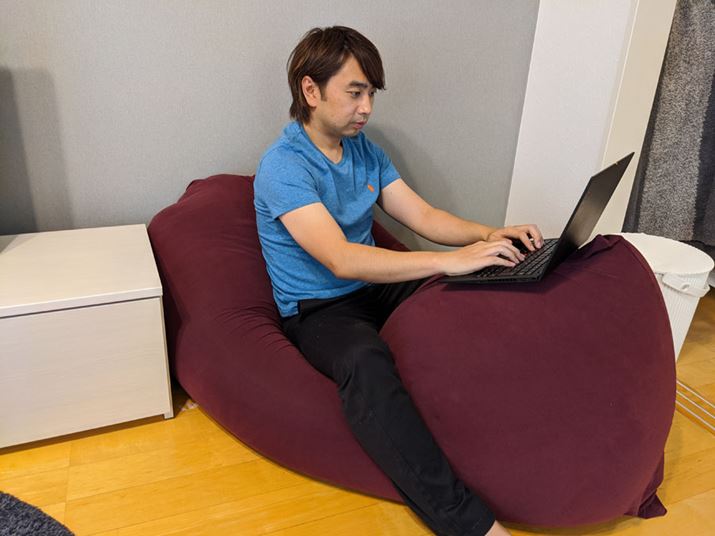 テレワーク、在宅勤務の実施が進み、自宅で仕事をする人の数が増えています。筆者もそのひとりで、4月に入ってから絶賛テレワーク中なのですが、自宅にデスクがないため、どこでどうやって作業をするのか非常に悩みました。そしてたどり着いた最適解が、「人間をダメにするソファ」で知られる「Yogibo」(ヨギボー)でした。