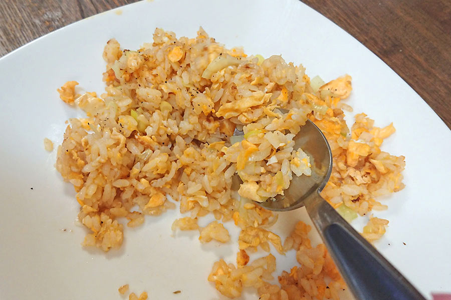 そしてできあがりは、「お店のチャーハン?」と思うくらいのパラパラ感! 1粒ひと粒の米が独立して、全体的に空気を含んでいるような仕上がりになりました。
