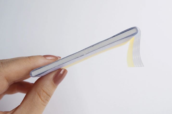 この性能を利用して、簡易インデックスを作ります。4段分、好きなサイズに切り取り、折り返して見直したいページに取り付ければ、“貼ってはがせるインデックス”が完成します。