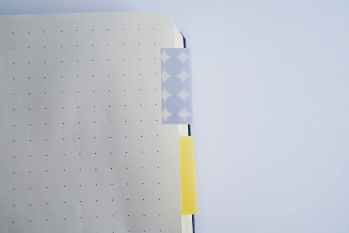 お風呂から出た後、このページは見直したいなと思った時に役立つのが、ヤマトの付箋「CHIGIRU(チギル)」。フィルム付箋に縦横5mm間隔でミシン目が入っていて、好みのサイズに切り取ることができます。