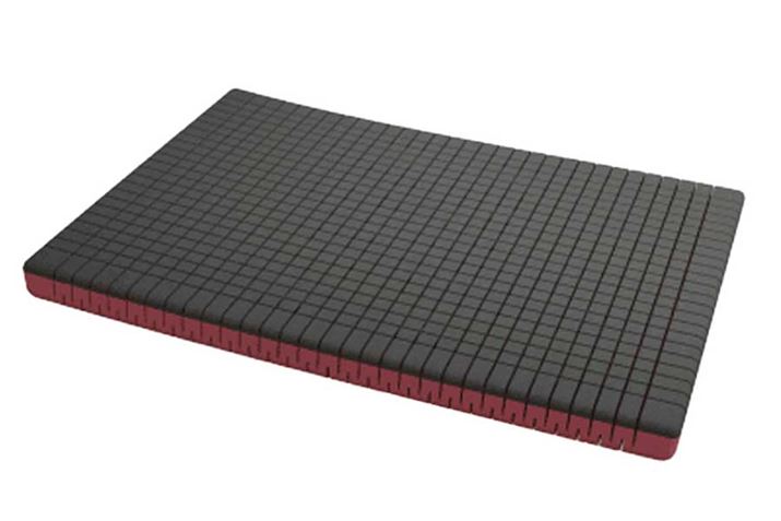 マットレスのトッパーとして扱いやすい、厚さ4cmの高反発マットレス。ウレタンの穴の大きさや数を変えることで、最適な硬さや弾力、密度を追求。凹凸加工が施されたウレタンが点で重さをしっかりと支えて体圧分散し、通気性も維持します。なお、ブリヂストンの化成品ソリューション事業は2022年8月に株式会社アーケムに承継されました。