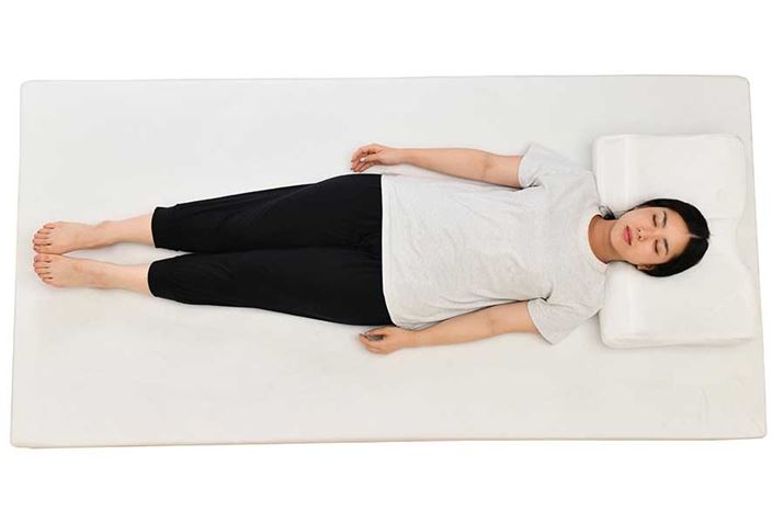 人は、直立したときに、首と腰の2か所にゆるやかなS字カーブができる姿勢を維持することが理想です。仰向け寝の場合、直立状態からそのまま横に倒れた姿勢を維持できると体への負担が少なく、横向き寝の場合はマットレスと背骨が平行に一直線になると負担が少なくなります。