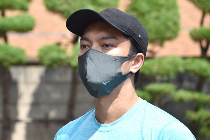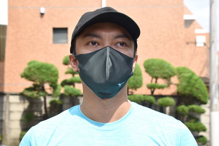 黒系のマスクは、少し怖い印象を与えるイメージがあったが、ミズノのロゴが入っているだけで、少し爽やかにスポーティブに見える……かもしれない