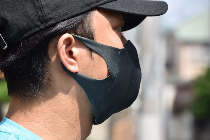 「マウスカバー」は密着感が高いものの、着用してない時と比べた息苦しさは、一般的な不織布マスクとさほど差はない。ただ、何となくではあるが、不織布マスクよりも熱がこもりにくいと感じた。さらに、走りながら顔を上下左右に振ってみたが、一般的なマスクと比べるとズレにくい印象を持った。本体の素材「2wayストレッチトリコット」が、多少伸縮性のある素材だからであろう。