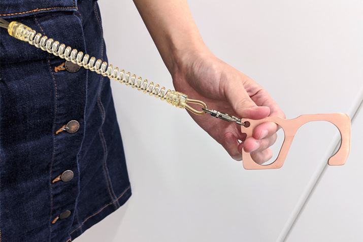 このドアオープナーは純銅製で、誘電性がある素材のため、そういったタッチパネルでも指の代わりに使えるのだとか。