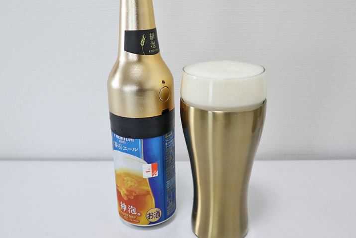 ちなみにビールタンブラー ON℃ZONEの容量は420mlでしたが、クリーミーな泡の分、350ml缶全部は入り切りませんでした……。少し飲んでから追加で注ぎました