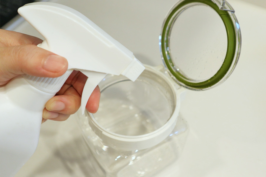 オーソドックスな方法は「煮沸消毒」ですが、こちらの容器はプラスチックなので、アルコール消毒をしました