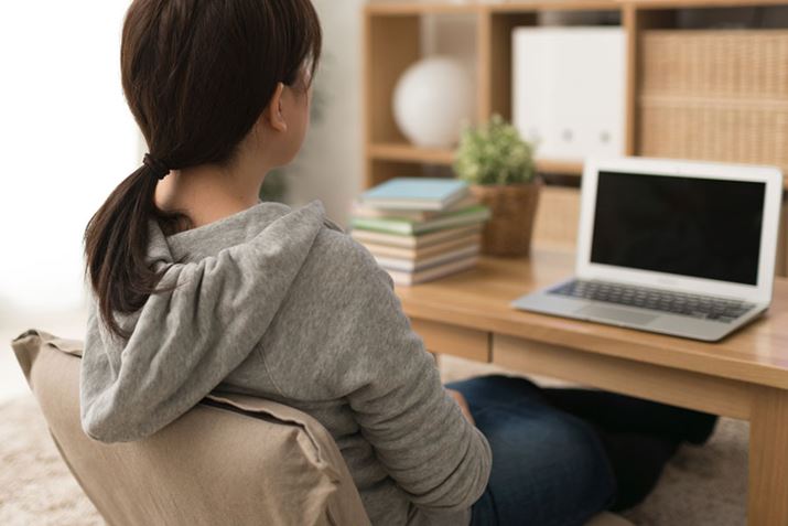 パソコン作業などでローテーブルと座椅子を組み合わせて使う場合は、座椅子に座ったときに、テーブルと膝上に適度な隙間 ができるようにしてください。また、座面が回転する座椅子なら、立ったり座ったりが楽なので、長時間の作業に向いています。