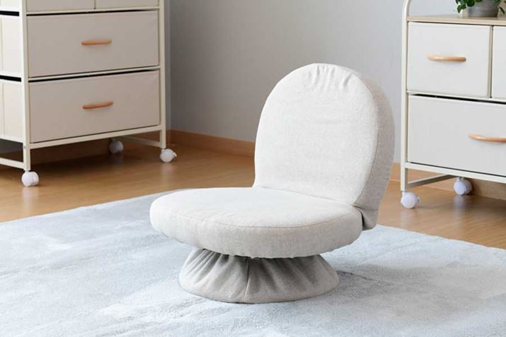 座面が360度回転するコンパクトな座椅子。床からの座面高が約18.5cmあるので、脚を崩してあぐらをかいて座ることもできます。肌触りの良い生地と、フィット感のあるクッションを用いているため、座り心地がよいです。