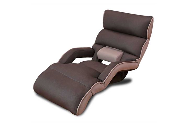 「からだ全体をしっかりホールドしてくれる座椅子です。肘付きながら幅74cmと比較的コンパクトなので、さまざまなシーンで使いやすいです。本格的なリクライニングチェアのデザインで背が折りたためるのはなかなかないので、使わない時の収納を重視する人におすすめです」
