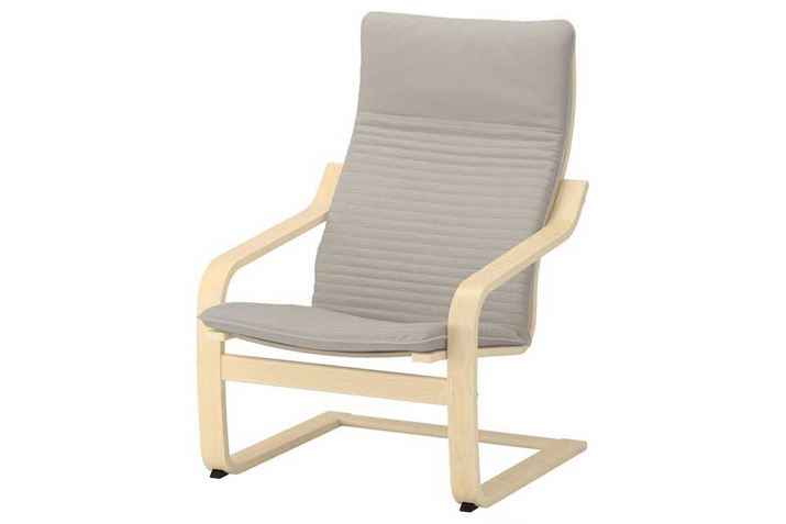 「イケアのパーソナルチェアを代表する大ヒットチェア。北欧インテリアに合うすっきりとした無駄のないデザインです。成形合板のフレームだから軽くて丈夫。カンティレバーのほどよいリクライニング感が楽しめるので、座りながら昼寝をするのも快適です」