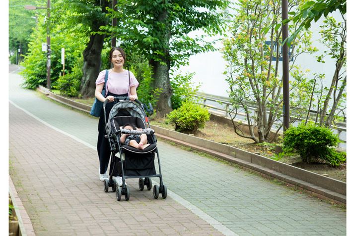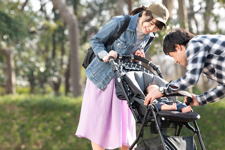 ベビーカーの本体サイズが大きいと、公共交通機関を使う場合や階段を昇降する場合だけでなく、玄関に置く場合やクルマの荷室に積む場合など、ストレスを感じることもあります。そこで、ベビーカーの折り畳み方法や折り畳んだ時の寸法もしっかりとチェック。折り畳み方法については、ワンタッチで開閉ができ、コンパクトに折り畳めるものがおすすめ。折り畳んだ時の寸法については、玄関など自宅の設置スペースやクルマの荷室寸法などを把握し、ある程度の条件を決めておくといいでしょう。また、折り畳んだときにベビーカーが自立するかどうかも重要です。