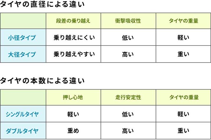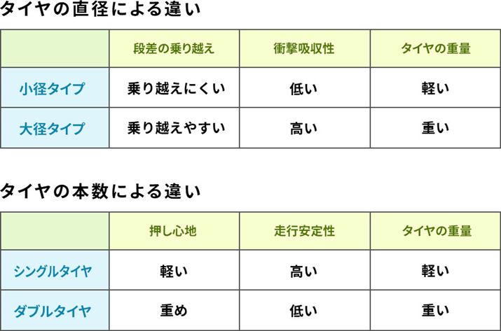 タイヤ:4輪シングルタイヤ、オート4輪対応