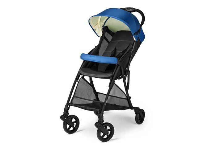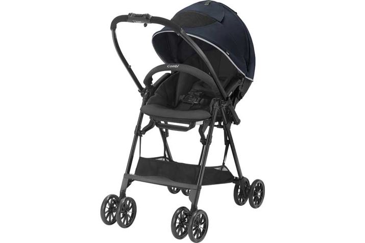 約3.9kgと軽量で、脇に抱えて持ち運べるグリップも装備。足下にステップを備えており、小径タイヤながら段差を楽に乗り越えられます。高さ約53cmのハイシートに独自の衝撃吸収素材「エッグショック」を用いたほか、大型の幌を用いており、地面からの熱や埃、直射日光や紫外線から赤ちゃんをしっかりとガード。容量約27Lの大容量バスケットは、荷物を入れたまま折り畳めます。