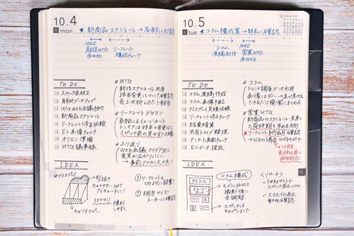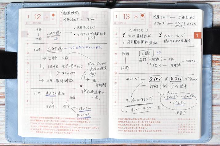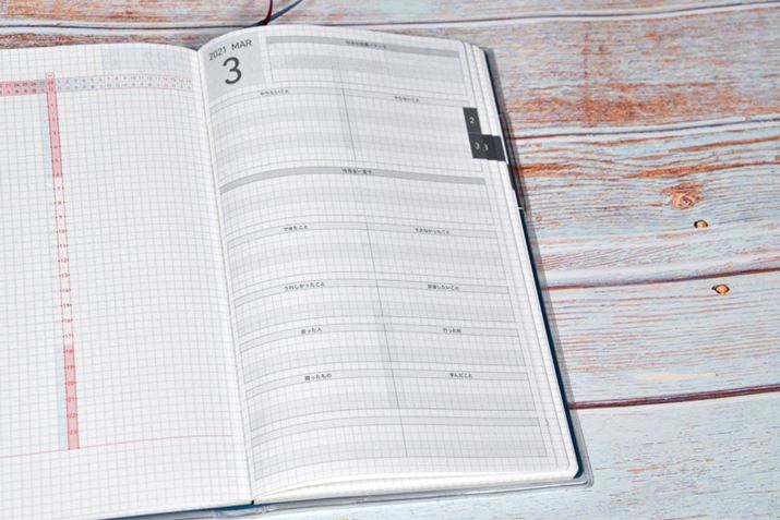 1日1ページタイプの手帳としては、スタイリッシュな印象を持つマークスの製品は、予定管理にもログにも使える。