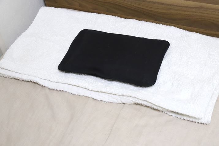僕みたいなストレートネックには、厚手のバスタオルとの組み合わせがちょうどいい感じ。冷た過ぎると感じたら、タオルの間に挟んでもよし