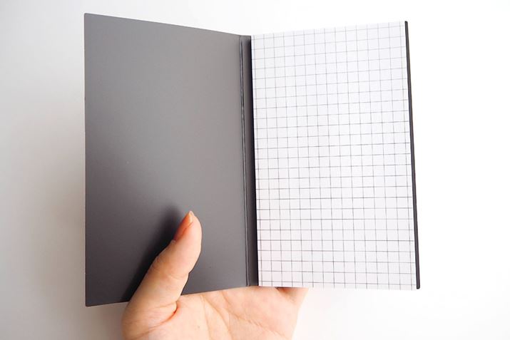 方眼罫は薄め。メモを書く時にはガイドとして役立つが、見直す時にはメモを読むジャマにならない