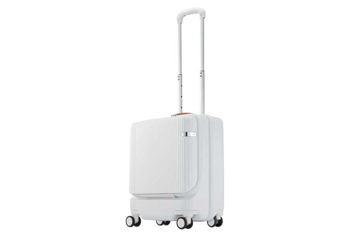 ドイツ発祥ブランドならではの堅牢さや緻密な作り込みが際立つモデル。素材にはポリカーボネートを採用し、ファスナー部分には2重のコイルを採用。前面ポケットを開くと13型相当のノートPCなどが収納でき、そのまま内部の収納部も開けます。ストッパー付きの静音キャスターのほか、ケース側面に充電用のUSBポートを備えるなど、機能性の高さもポイント。