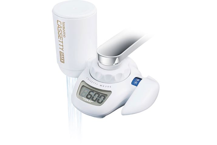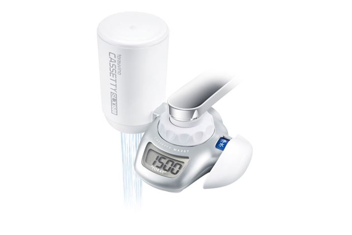16項目の物質を除去できる十分な浄水効果を備えながら、同社従来製品比で約2倍となる、1分間約3.0Lという高速な浄水を実現。液晶画面は大型で浄水使用残量と電池残量を表示できます。「カセッティ」シリーズは浄水カートリッジから直接浄水が出るので、吐水口の汚れが気になりにくいのも特徴。