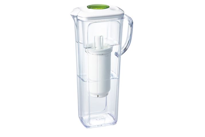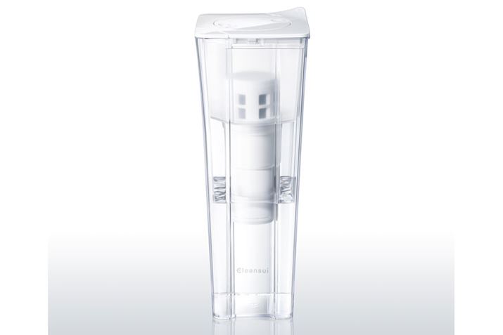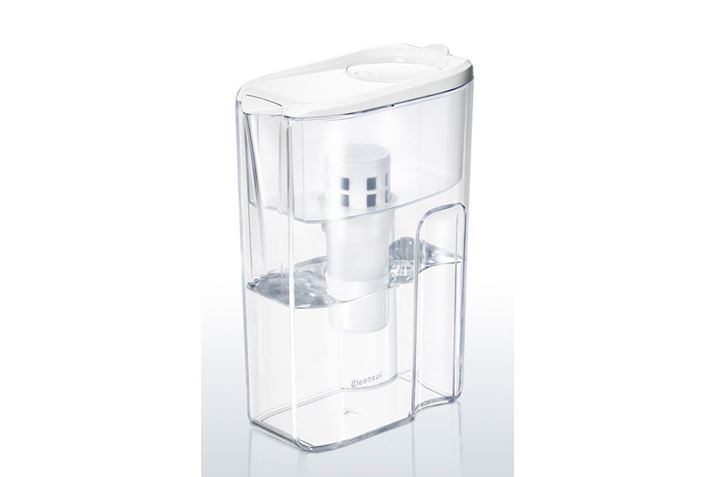 16項目の不純物を除去できる高除去モデル。約3分間で1Lの浄水が得られる「時短カートリッジ」を採用しています。使用開始日を設定すると、フタの上面に2か月後の交換目安日が表示される機能も。浄水量は約1.1Lで、冷蔵庫のポケットにすんなり収まります。