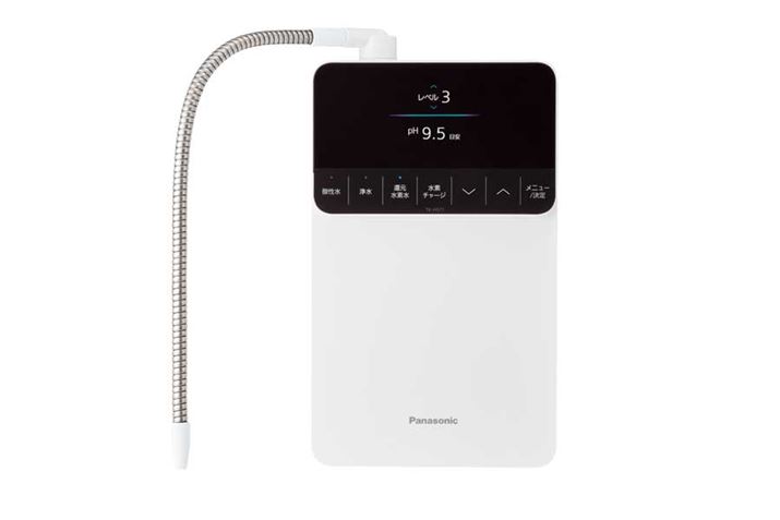 水を電気分解することにより、水素を含んだアルカリ性の飲用水を生成する還元水素生成器。「フルカラー液晶ディスプレイ」を採用しており、アルカリ性や酸性を表す「pH」や、選んだ水質などを大きな文字で確認可能。10cmの奥行きがあれば設置できる省スペース設計で、切れ目のないフラットデザインも特徴です。